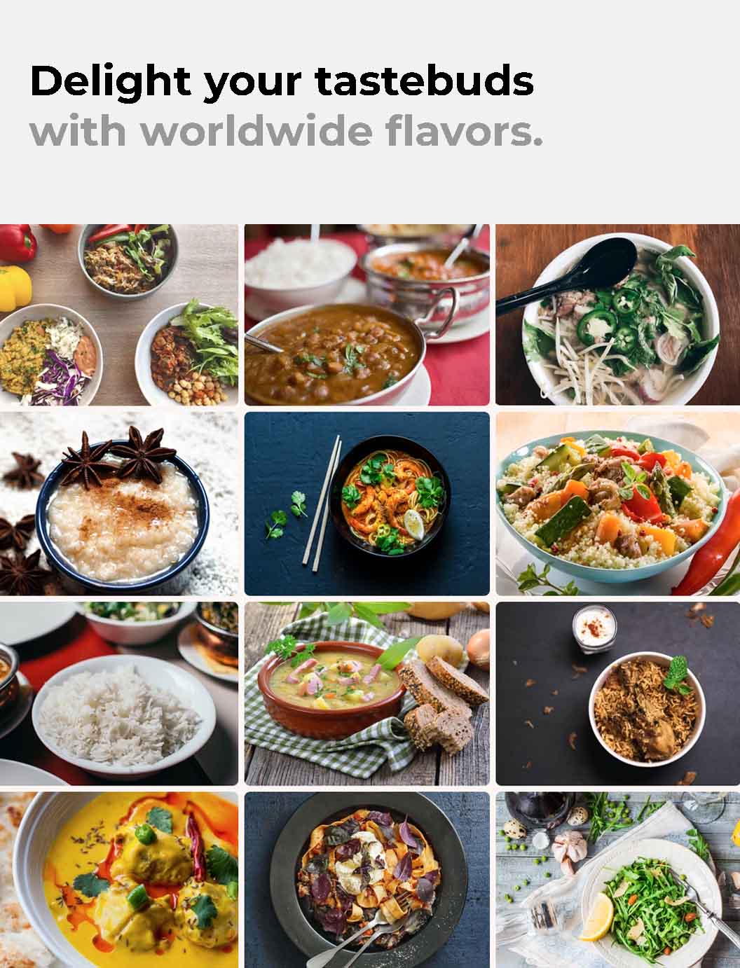 You can add your own recipes or choose from hundreds of curries, stews, pastas, stir-frys, soups, and more.
